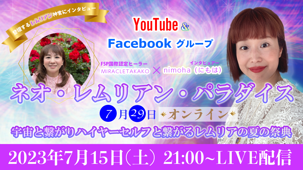 レムリアの夏の祭典「ネオレムリアンパラダイス」7月29日(土)オンライン&東京会場同日開催!登壇ヒーラーの魅力に迫る☆