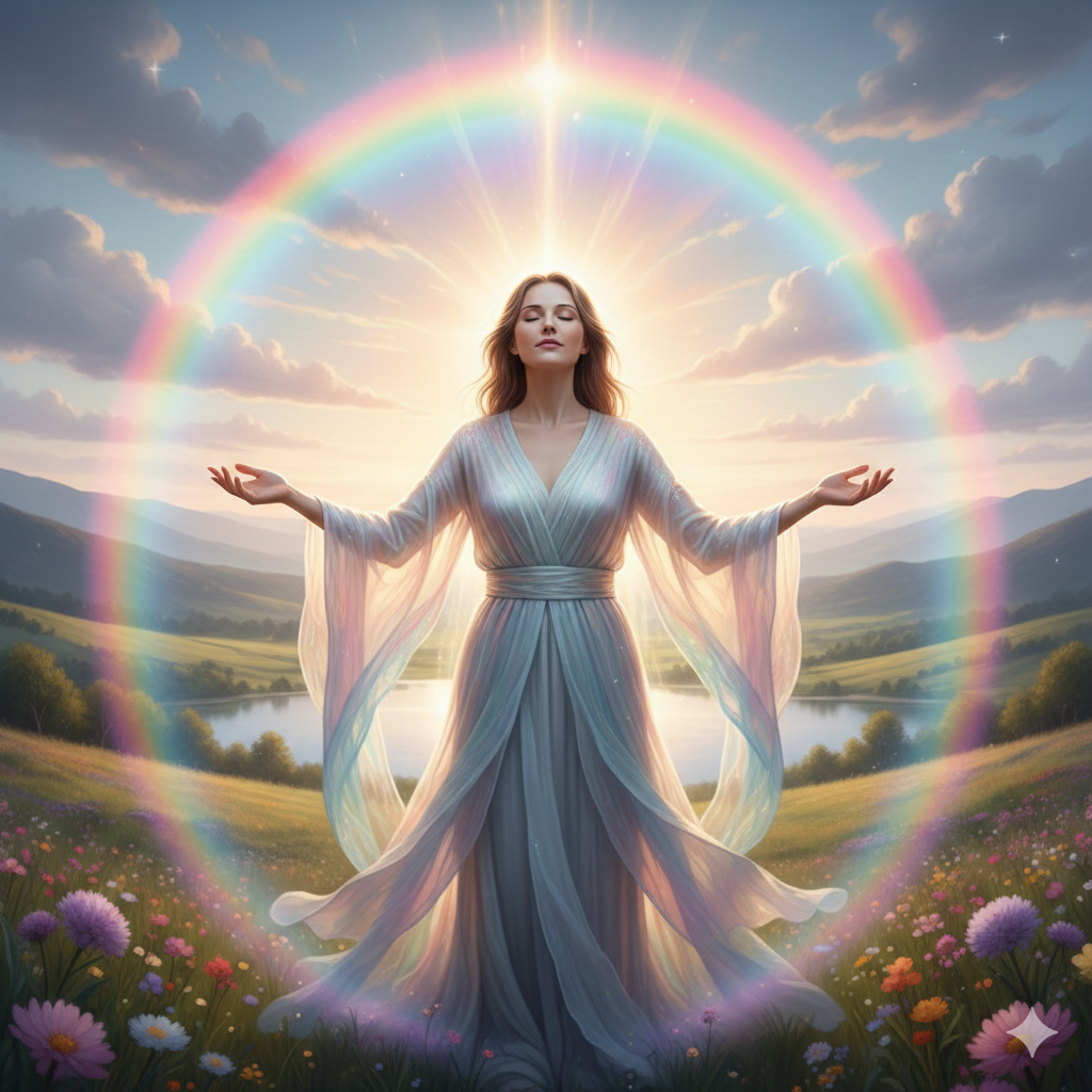 内なる光と影が手を取り合うとき、心に虹がかかります。完璧でなくて大丈夫。ありのままのあなたのすべてが、今この瞬間の美しさをつくっています。