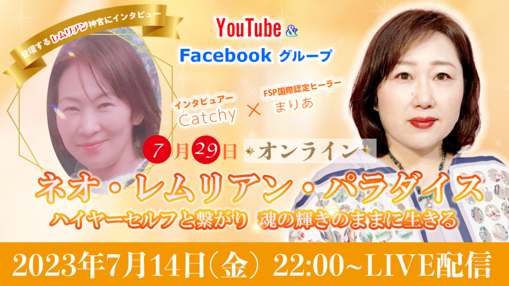 レムリアの夏の祭典「ネオレムリアンパラダイス」7月29日(土)オンライン&東京会場同日開催!登壇ヒーラーの魅力に迫る☆ インタビュアー:Catchy国際認定ヒーラー:まりあさん https://www.youtube.com/live/FEQMLZCoSy0?feature=share オンラインに登壇... -