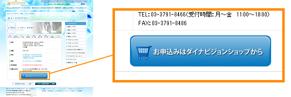 受講ご希望の場合は、【お申込はダイナビジョンショップから】のボタンをクリックします。