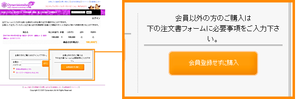 会員登録せずに、お買い物を続ける方は、【会員登録せずに購入】のボタンをクリックします。