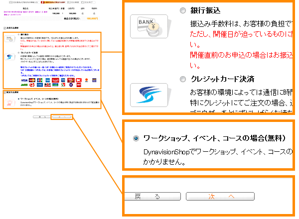 「配送法選択」欄は、ワークショップ、イベント、コースのため、発送物はありません。チェックはそのままにしてください。