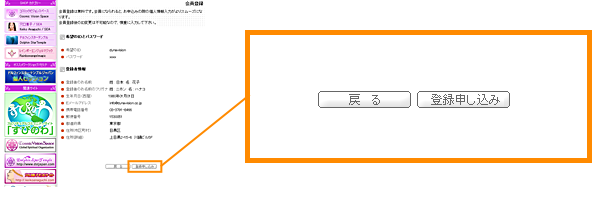 登録情報に間違いがないかご確認いただいたら、【登録申し込み】のボタンをクリックしてください。